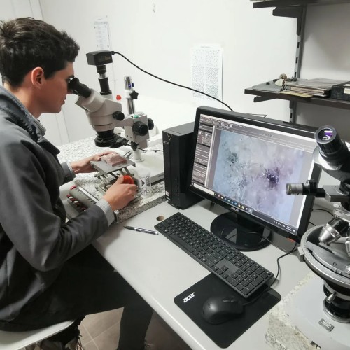 We use microscopes and spectroscopic techniques to study rock textures, mineral composition, and crystallographic structures.